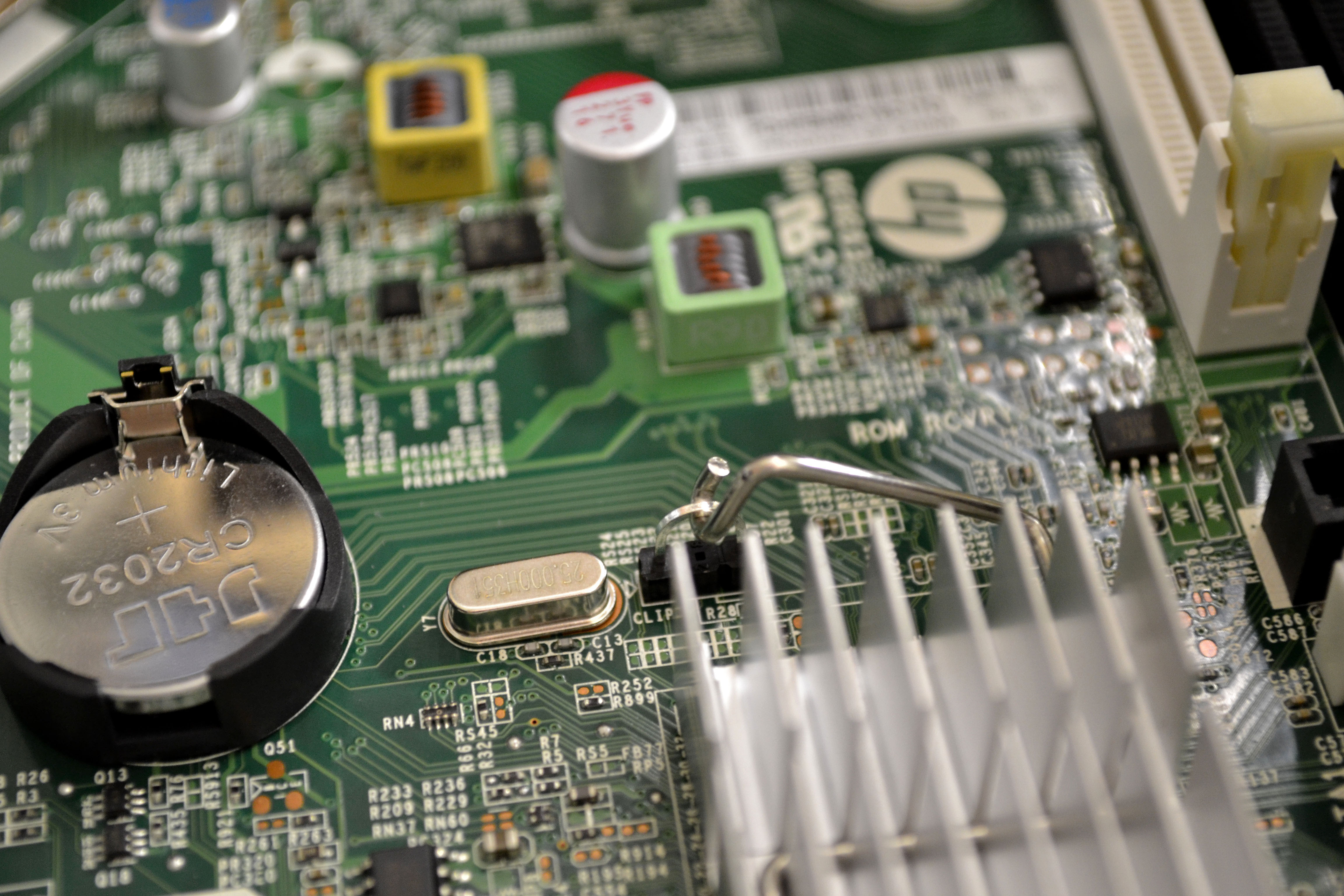 A computer motherboard is seen in the 111th Communications Flight shop on Jan. 23, 2015 at Horsham Air Guard Station, Pa. On March 2, the 111th Attack Wing will begin to migrate its computers and users into a central Air Force Network dubbed AFNET over a 3-week period. (U.S. Air National Guard photo by Master Sgt. Christopher Botzum/Released)